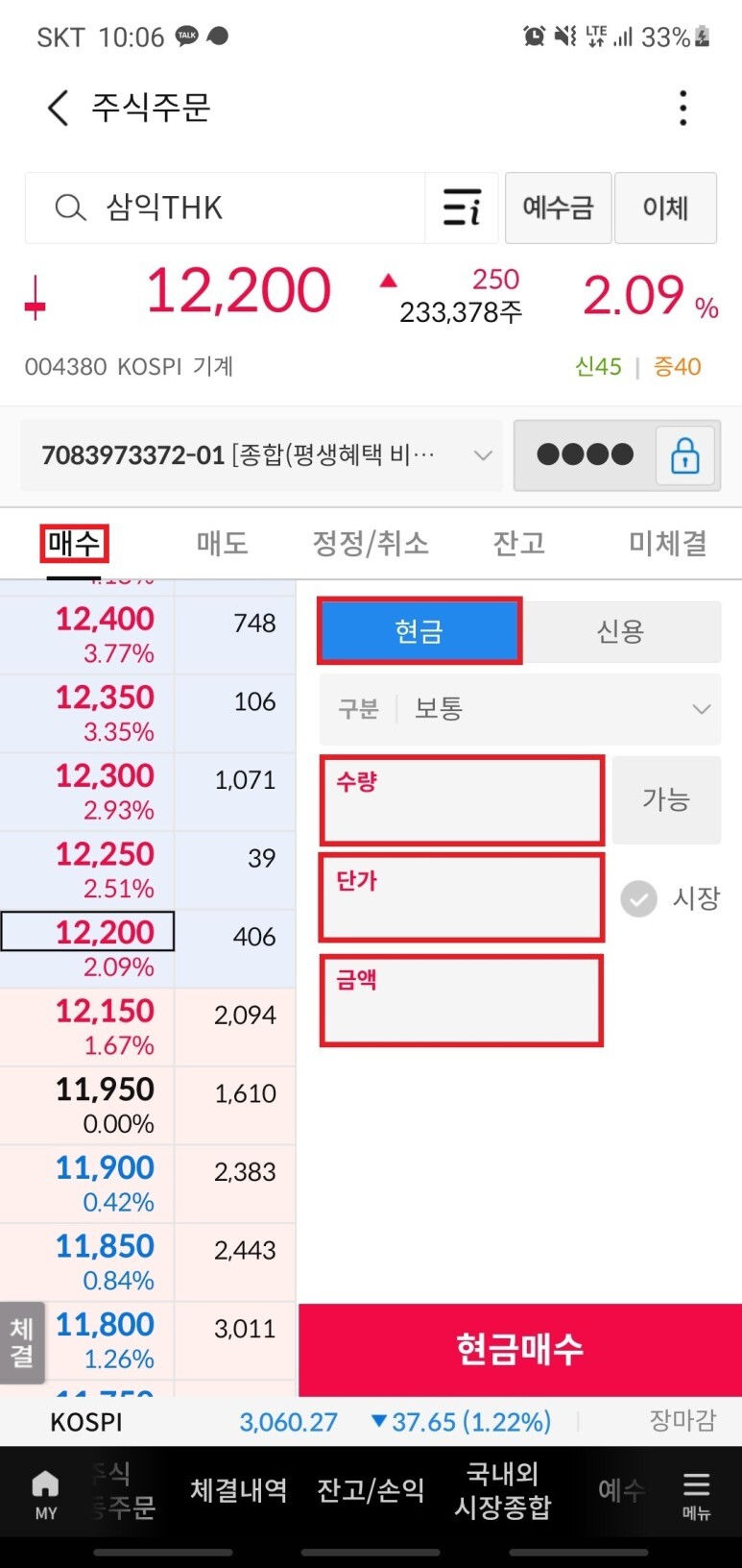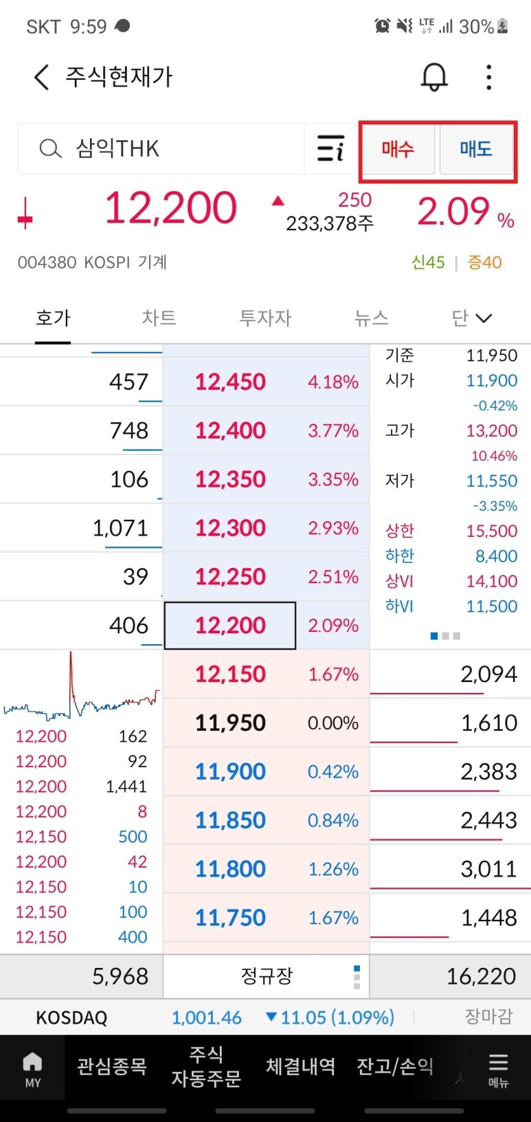 ex) 삼익THK는 12,200원이 시장가로 매수 가능