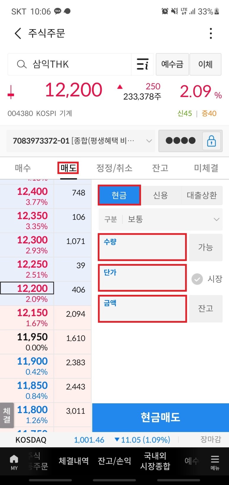ex) 삼익THK는 12,200원이 시장가로 매수 가능