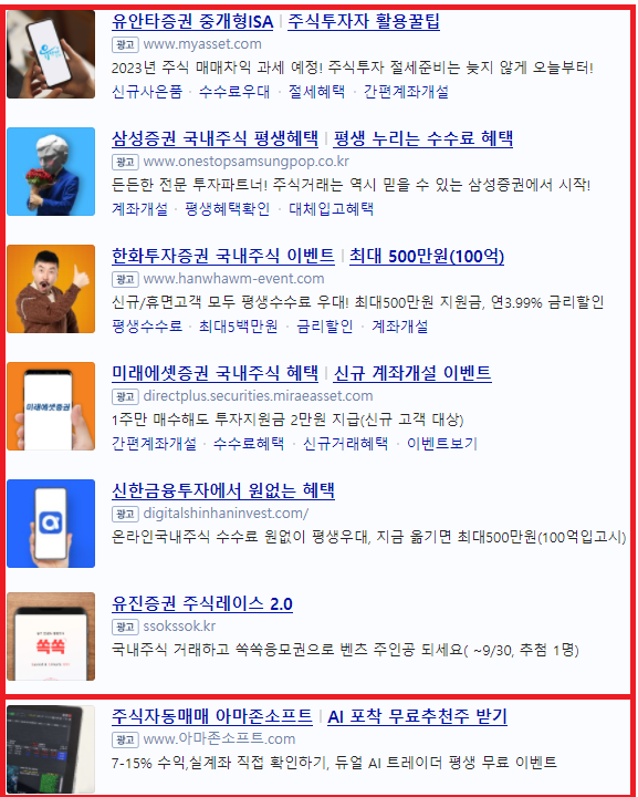 아래 빨간 박스로 표시 해둔것은 증권회사가