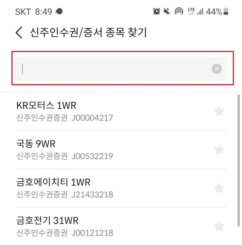1) 신주인수권 종목 검색