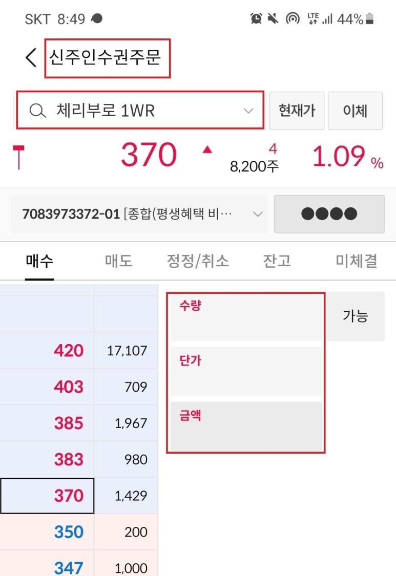 신주인수권 주문