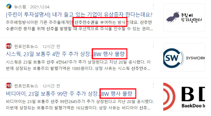 지난번 포스팅의 전환사채, 주식 리픽싱에 이어 이번에는 신주인수권(BW)에 대하여 알아보도록 하겠습니다.