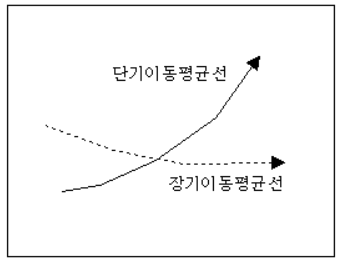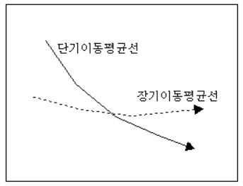 단기 이동 평균선이 아래로부터 위를 향하여 중·장기 이동 평균선을 급속히 뚫고 올라갈 때는 매입 신호이다.