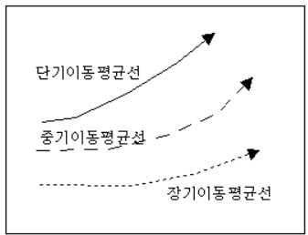 매일매일의 주가나 거래량의 변화를 도면에 선으로 그려보면, 그 선은 대개 변화가 매우 심한 불규칙적인 곡선이 된다. 이러한 불규칙적인 변화를 최대한 줄여서 단순하고 규칙적인 곡선을 만든 연장선을 이동 평균선이라 하는데, 이동 평균선이 주가 분석에 많은 도움이 되는 이유는 이러한 불규칙적인 변화를 최대한 줄여서 어느 정도 추세적인 흐름을 알 수 있다는 데 있다.