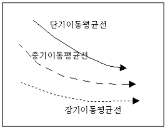 단·중·장기 이동 평균선이 나란히 하락할 때는 강력한 약세 시장일 가능성이 높다.