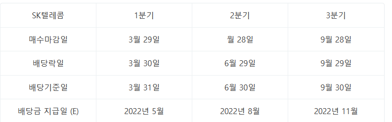 SK텔레콤도 분기마다 하기 때문에 비슷할꺼에요.