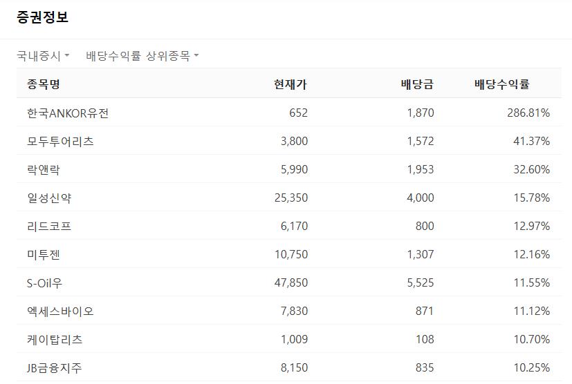 오른쪽 아래 보시면 배당수익률이 보이죠
