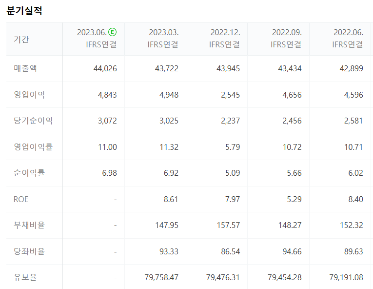 분기실적을 보면 작년과 매출과 영업이익은 비숫해 보여요.