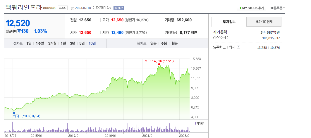 3. 맥쿼리인프라 주가 : 12,520원