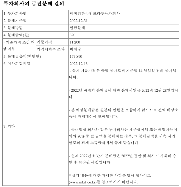 2. 맥쿼리인프라 배당금 분배금
