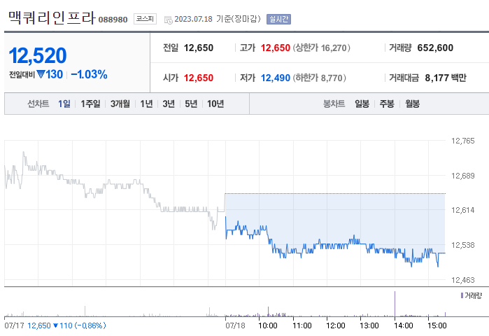 3. 맥쿼리인프라 주가 : 12,520원
