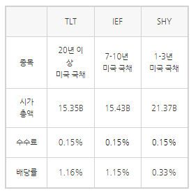 만기 1-3년 남아 있는 미 재무부가 발행한 채권을 말합니다. 단기 채권이라 아무래도 안정성이 높다고 할 수 있습니다.