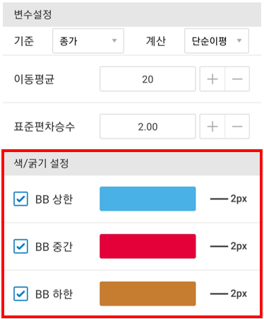 볼린저 밴드 삼성증권 차트 설정 방법