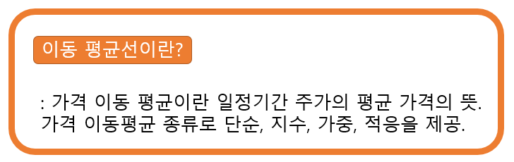 이동평균선을 통해 주가 분석의 주 지표로 사용.