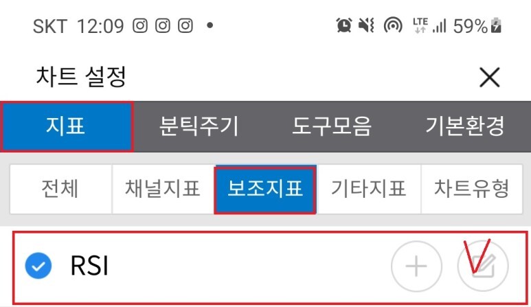 기술적 보조지표 RSI : 삼성증권 설정 방법