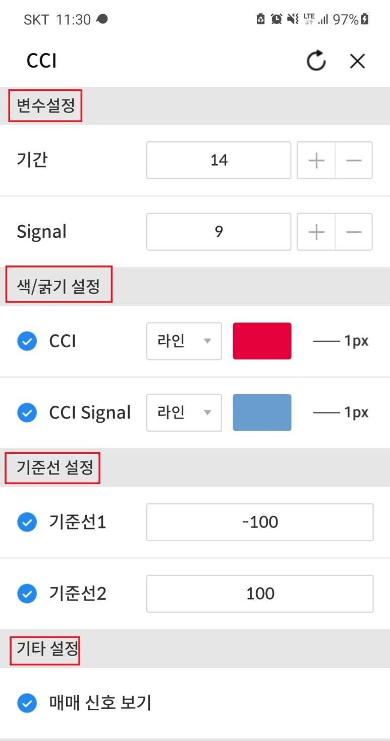 4. CCI 차트 설정 확인
