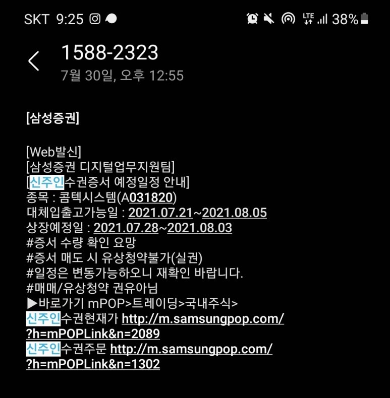 콤텍 시스템이라는 주식을 보유하고 있었는데 문자가 오더라고요.